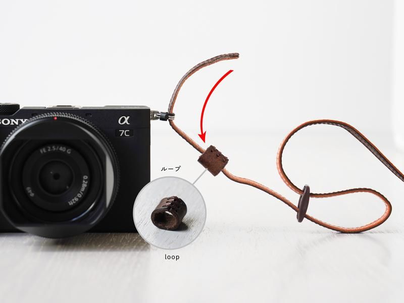 ストラップの先端を折り返し、ループに通します。