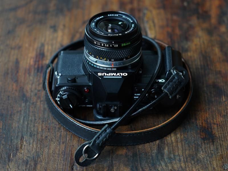 ストラップの装着にリングを使用するタイプの一眼レフやミラーレスカメラ・レンジファインダーなどに最適な、太めの革紐を使ったストラップです。