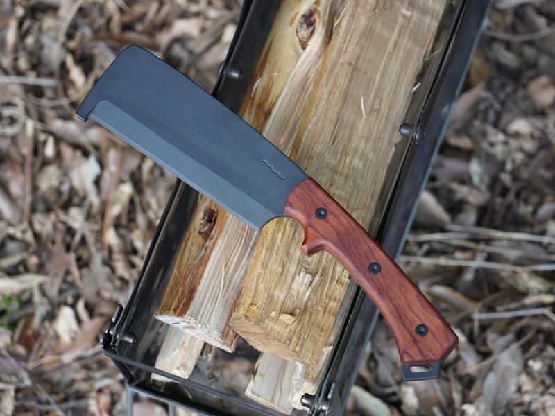 2. 薪割りに特化。6mm厚の炭素鋼から切り出したフルタング構造で、高い破断力とタフさを実現