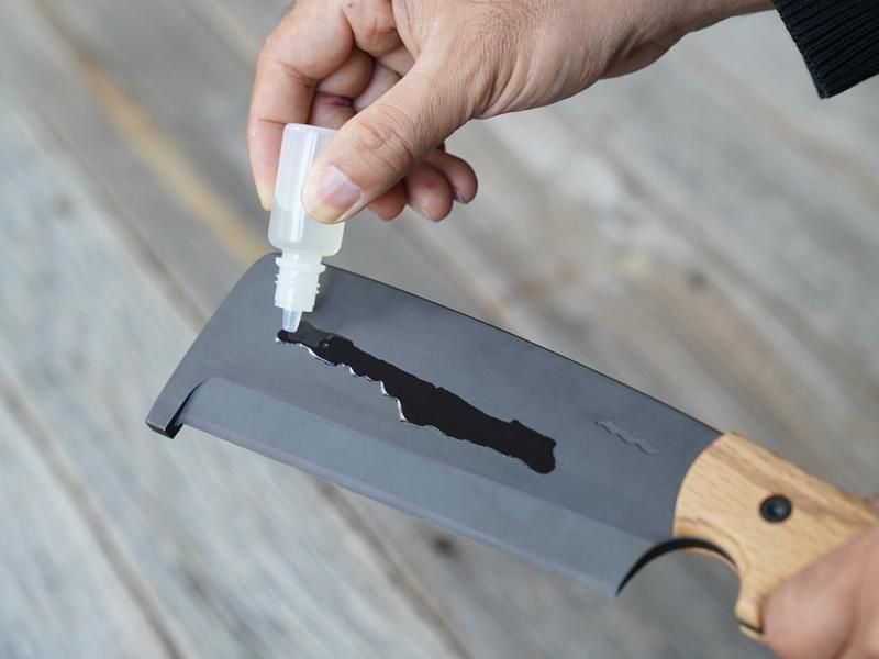 炭素鋼は鋭利で丈夫な反面、ステンレスより錆びやすいという特徴があります。使い終わった後は、付属の椿油を刃に塗ることでサビを防止できます。