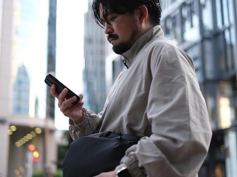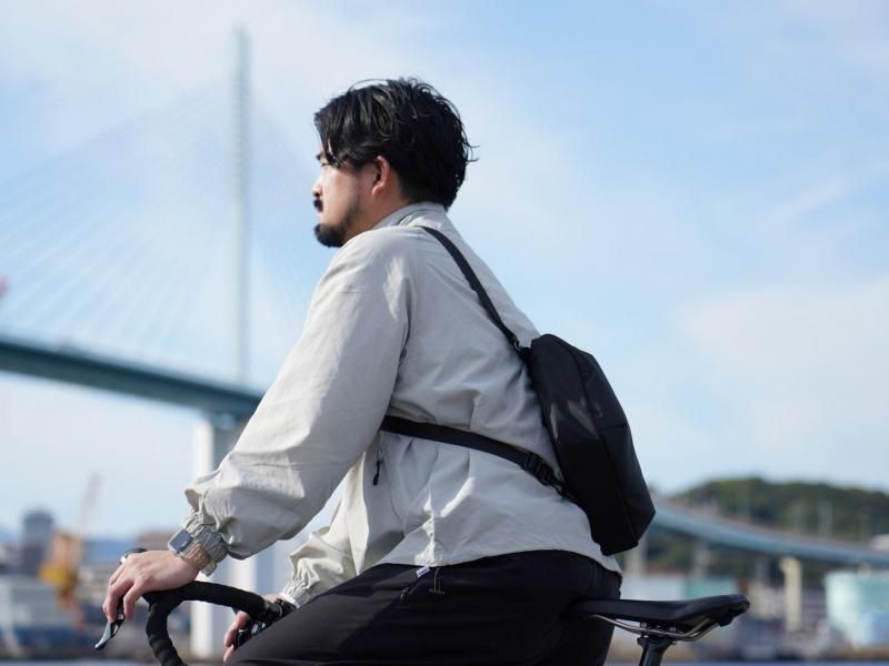 初代DRIFTでもご好評いただいたクイックな伸縮機能「サムスライダー」を、今回のバッグにも搭載しました。親指を入れてスライドするだけで、瞬時にストラップの長さを調整することができます。